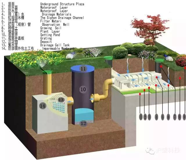 该系统打破了传统雨水收集系统只能收集地表水及部分地区渗入水的诟病,将地表水、渗入水统统收集,充分利用珍贵的大自然资源。并且能够保持屋面水位处于较低水平,保持土壤的透气性及透水性,保证植物根系的正常生长。并可作为防水层的柔性保护层,替代传统的水泥保护层,大大降低工程造价。“pds”系统尤其是用于顶板面积较大放坡困难、暴雨天气多的地区。